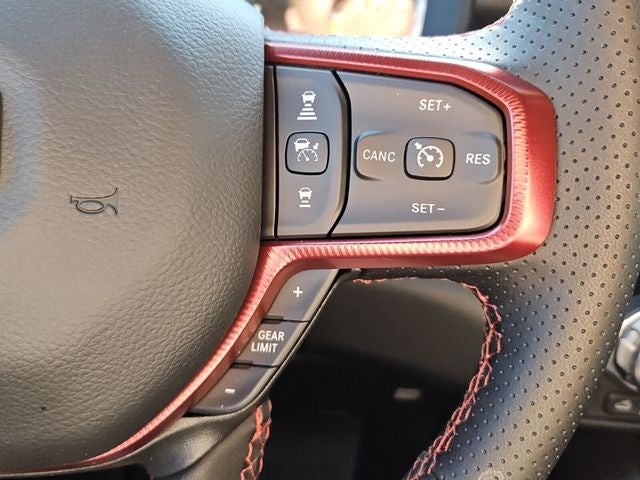The Rebel's interior is a sanctuary of comfort and technology, featuring a stunning 12.0 Uconnect 5 Navigation display, 10 premium speakers, and wireless charging capabilities. The heated steering wheel and power-adjustable pedals ensure a personalized driving experience, while the Trailer Tow Group II and Towing Technology Group provide advanced towing capabilities, making this truck a true workhorse.